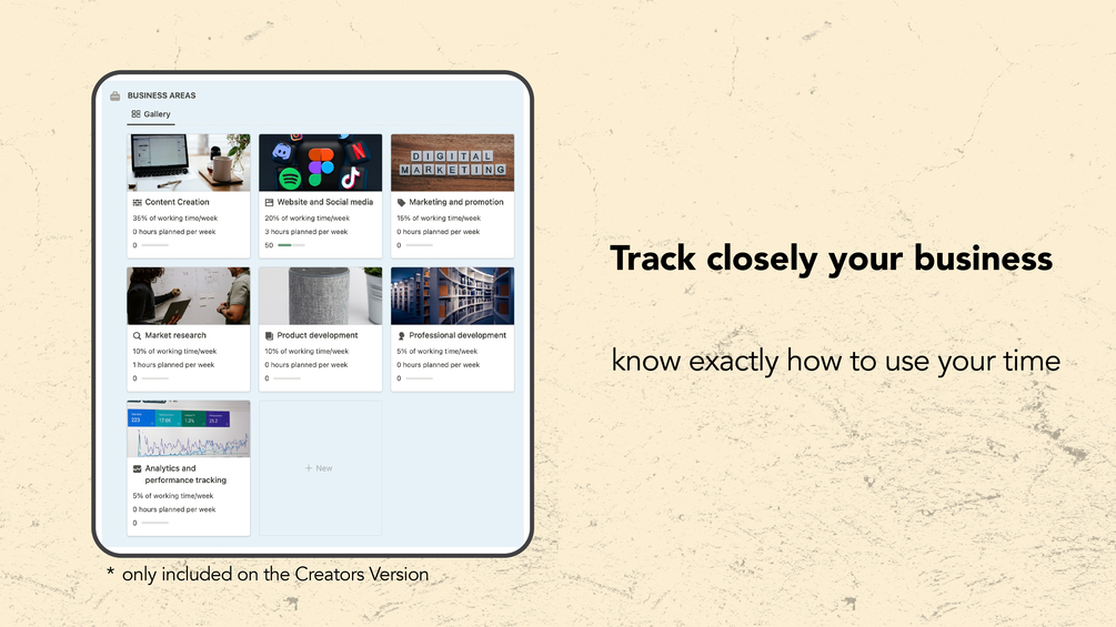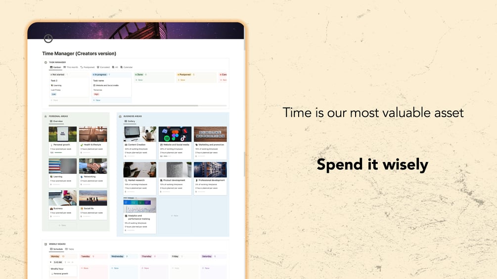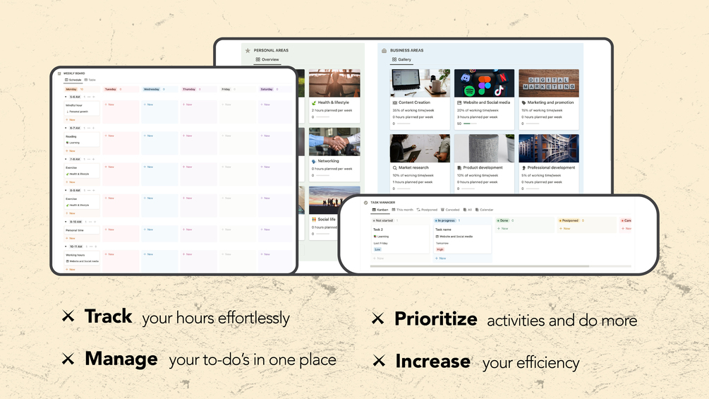 • Gain Clarity: Visualize your personal and business areas, track time spent, and make informed decisions for optimal growth and success.