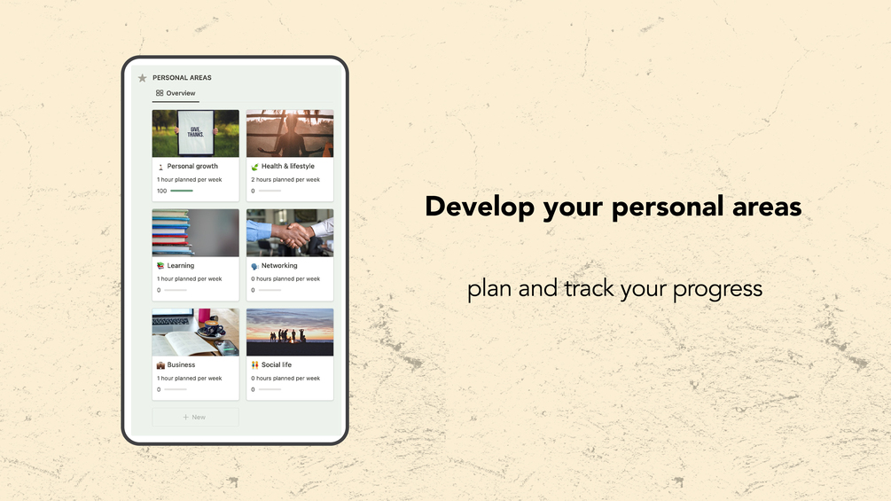 2. Personal Area Board: Create personalized areas to develop and thrive in various aspects of your life. Easily monitor the time you invest in each area, empowering you to strike the right balance.
